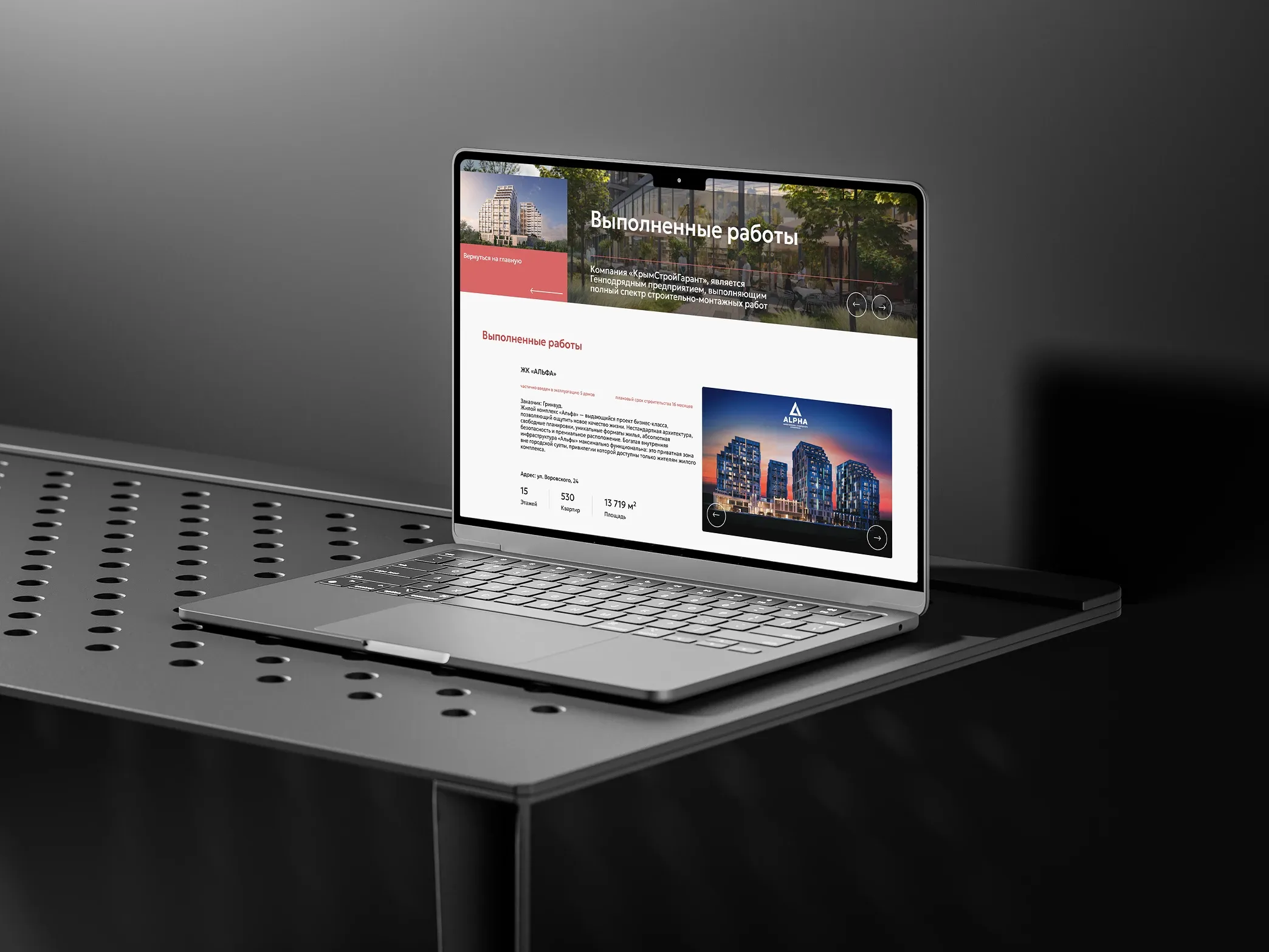 После утверждения логотипа и общей визуальной концепции был разработан дизайн корпоративного сайта, ориентированный на удобство восприятия информации и формирование доверия. Дизайн проектировался с учётом UX-подхода, понятной визуальной иерархии и акцентов на ключевых услугах компании. Далее была выполнена адаптивная вёрстка сайта, обеспечивающая корректное отображение и стабильную работу ресурса на всех типах устройств — от смартфонов до десктопов. Такой подход положительно влияет как на пользовательский опыт, так и на поведенческие факторы, важные для SEO-продвижения