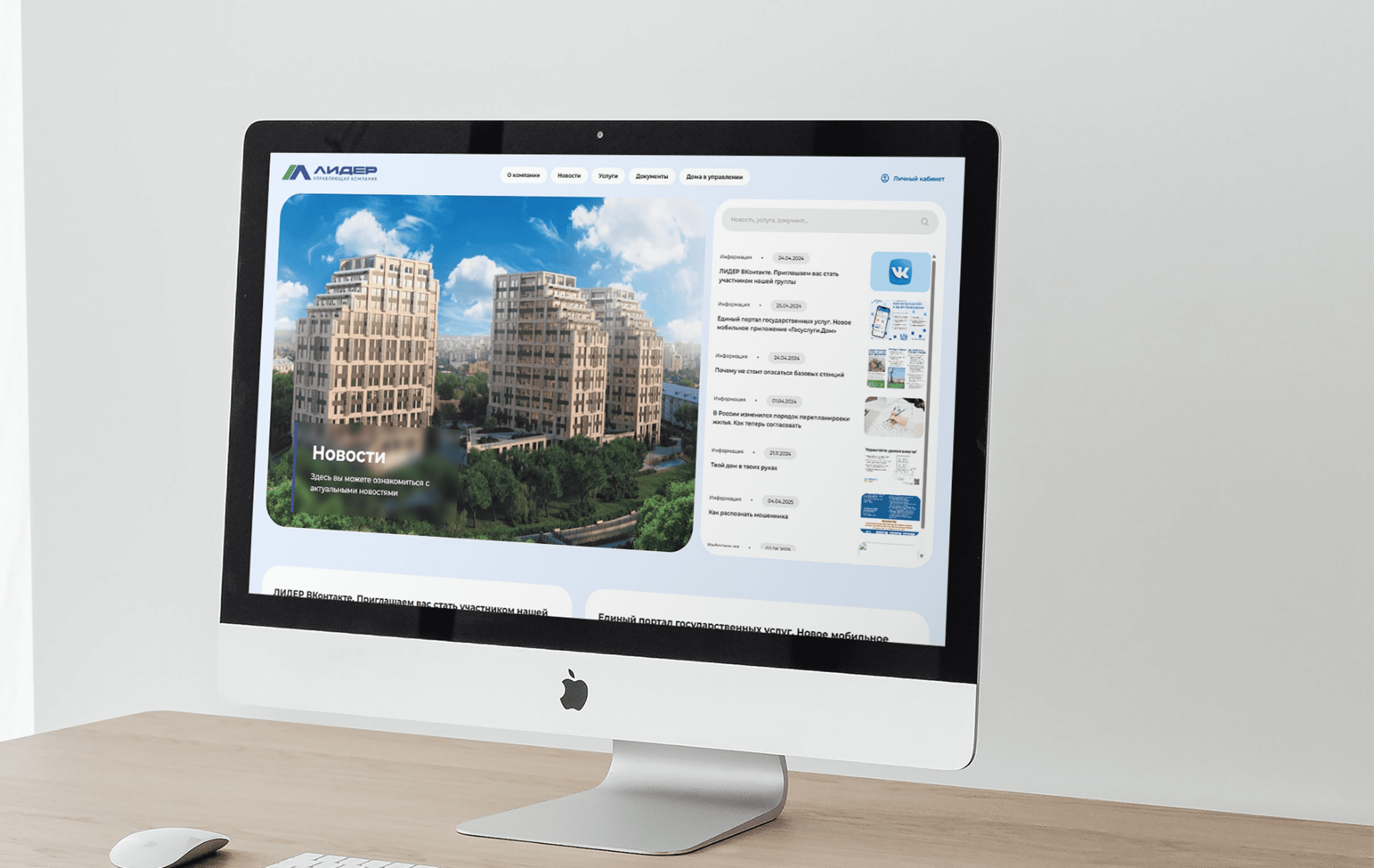 В рамках проекта по редизайну сайта управляющей компании «Лидер» наша команда успешно выполнила все задачи, поставленные клиентом. Мы разработали современный дизайн сайта, который соответствует актуальным digital-трендам и формирует доверие со стороны жильцов и партнёров компании. Была реализована адаптивная вёрстка сайта, обеспечивающая корректное отображение и удобство использования на любых устройствах. В процессе разработки мы выполнили интеграцию с сервисом Домион, что позволило автоматизировать взаимодействие с жильцами, упростить оплату услуг и наладить удобную коммуникацию с собственниками. Также мы внедрили удобную систему управления сайтом, благодаря которой сотрудники управляющей компании могут самостоятельно обновлять контент, публиковать новости и управлять информацией без привлечения разработчиков
